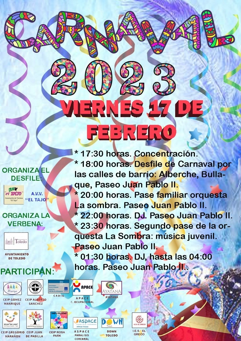 A las 18:00 inicio del desfile de Carnaval por las calles del Barrio: