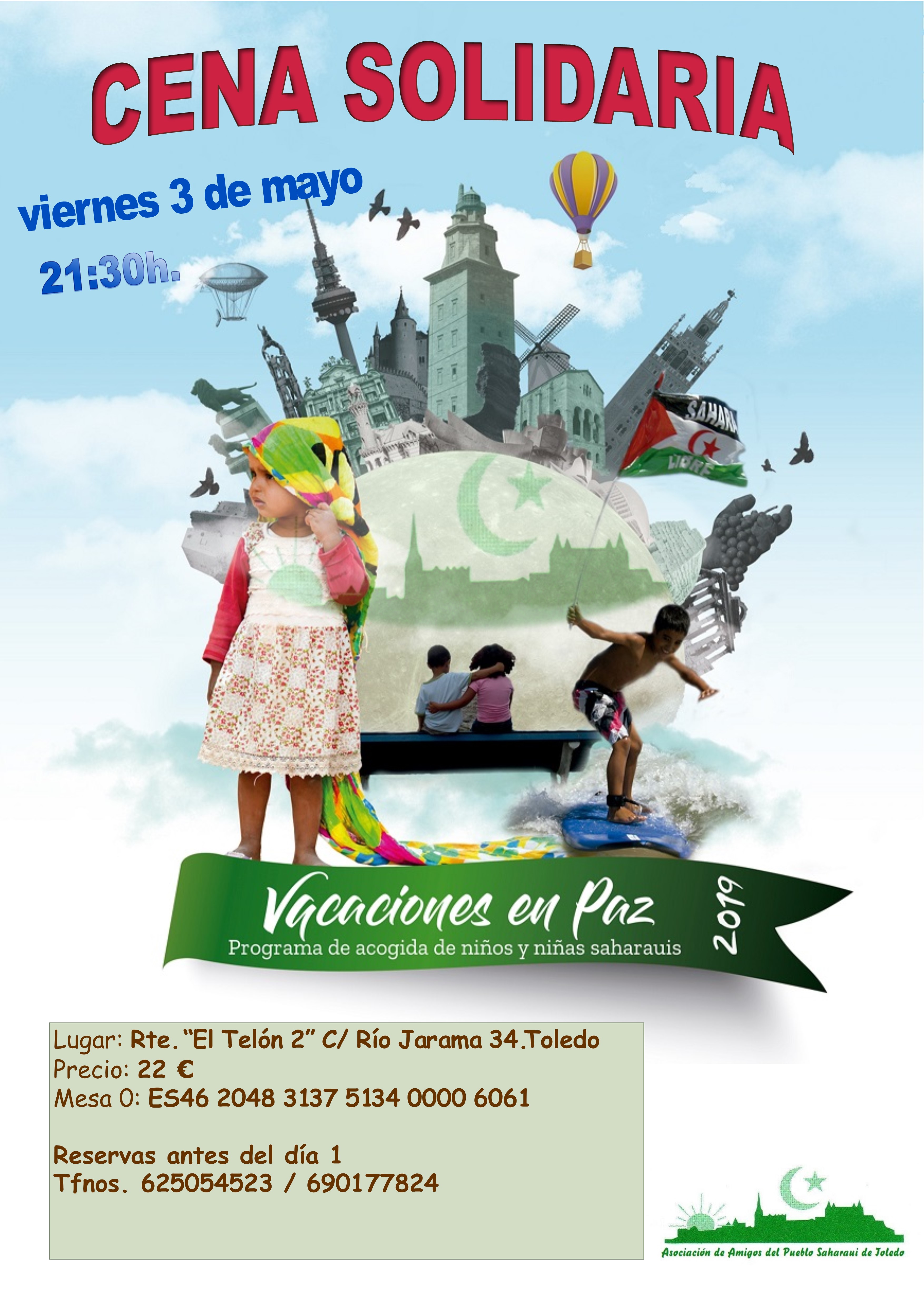 3 de mayo Los Amigos del Pueblo Saharaui celebran su ya tradicional cena solidaria para recaudar fondos para el programa de acogida de niñ@s saharauis, en el restaurante El Teflón en la C/Jarama 34 (zona Industrial).