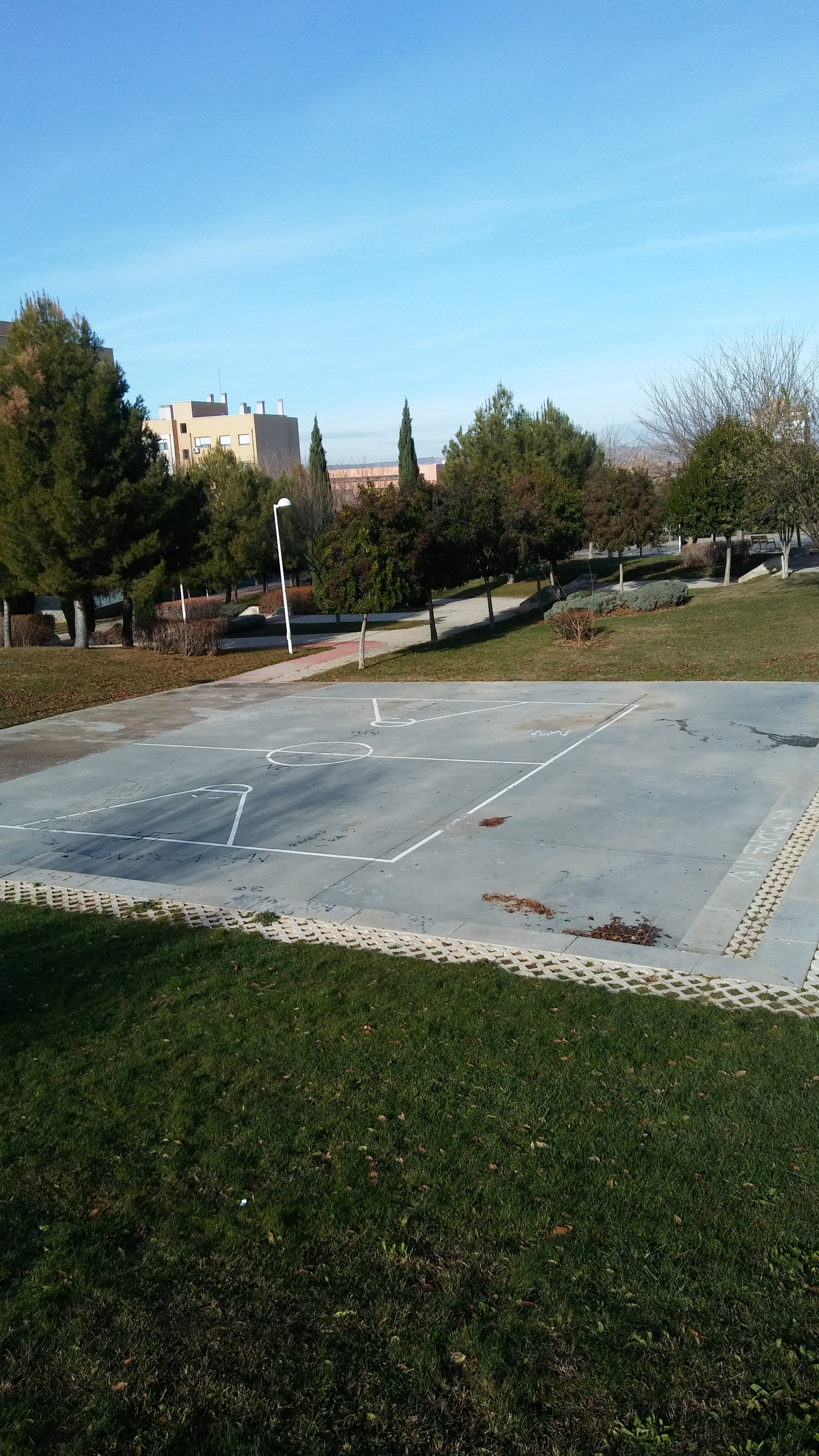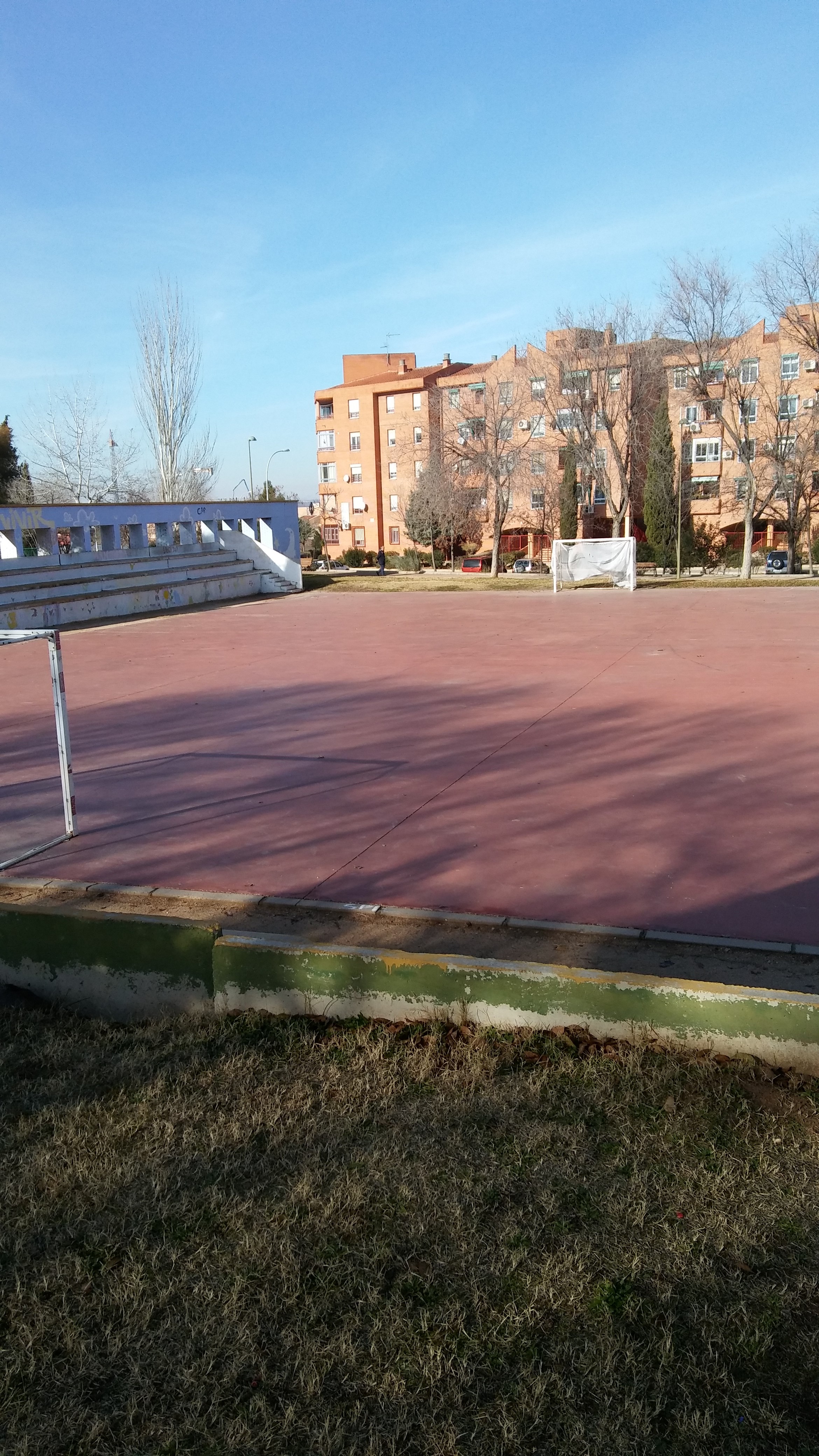 El «plan renove» de mejora de las instalaciones deportivas, me temo que no va a llegar al Polígono. Estas dos imágenes donde se ven dos pistas, llevan así años. Desde la primera legislatura de Page, allá por el año 2008. A una le quitaron las canastas, como se puede apreciar en la foto( parque junto a la calle Río Mesa),…. y pasan los años y nadie las repone. El concejal de deportes JUAN JOSÉ PÉREZ DEL PINO ,lo sabe desde hace dos años. Cero respuestas. La otra ( parque Los Alcázares) lleva sin pintar las líneas del campo, los mismos años. Lo que sorprende son las manifestaciones de la alcaldesa( que vive en este barrio), diciendo la semana pasada en el periódico La Tribuna, que el plan renove había llegado a este barrio. Su única actuación ha sido, el arreglo de las goteras del pabellón del colegio público Escultor Alberto Sánchez. Lamentable!!! Ni tenemos pistas de tenis,… ni de pádel. …Y unas pistas de atletismo con un entorno y un vallado perimetral apropiado.