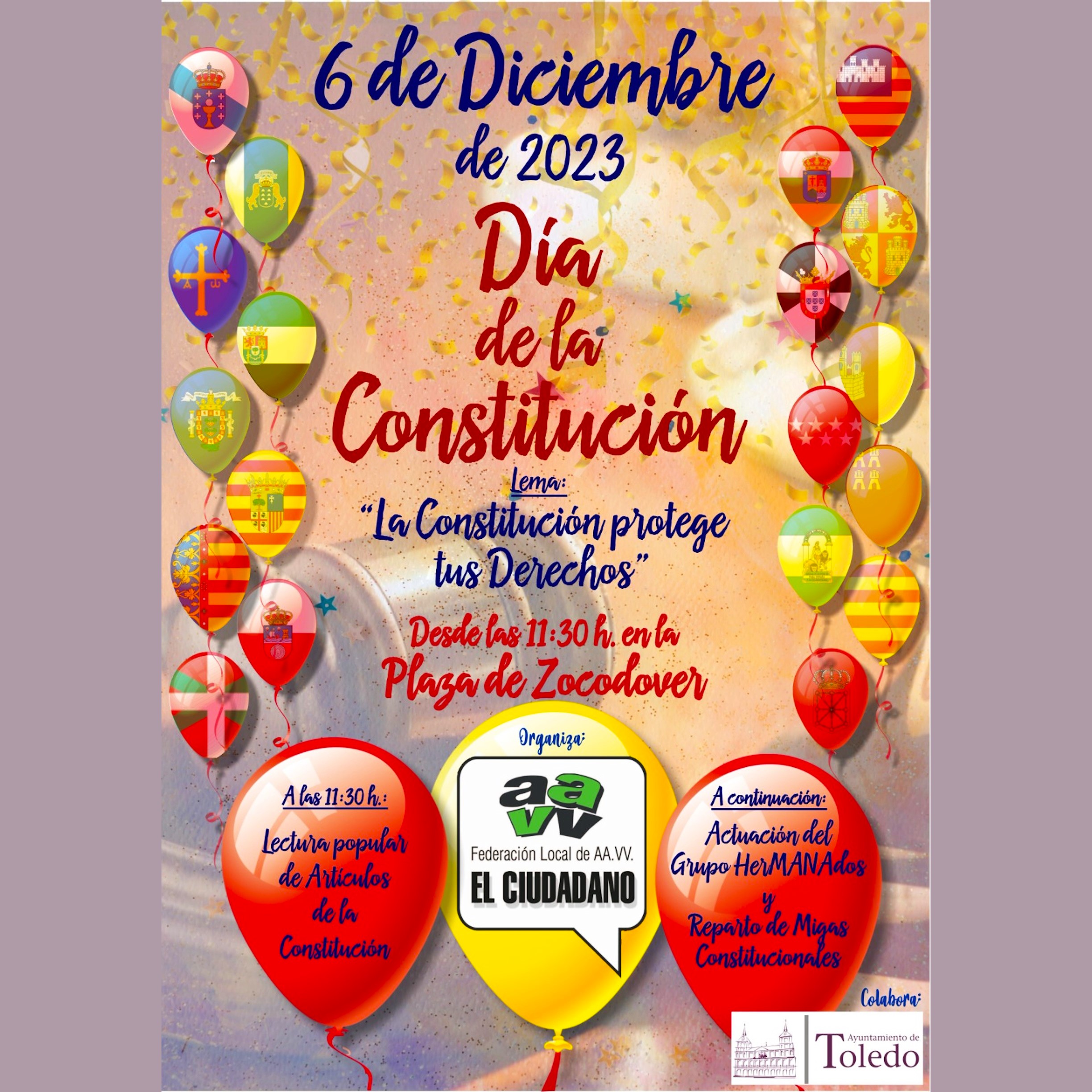 Con el lema «La Constitución protege tus DERECHOS» a las 11:30 de la mañana del miércoles 6 de diciembre en la Plaza de Zocodover se ha desarrollado la lectura de artículos.