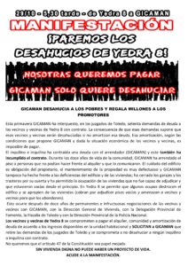 El miércoles 29 de octubre a las 5:30 en calle Yedra número 8; manifestación en defensa de la vivienda pública digna.