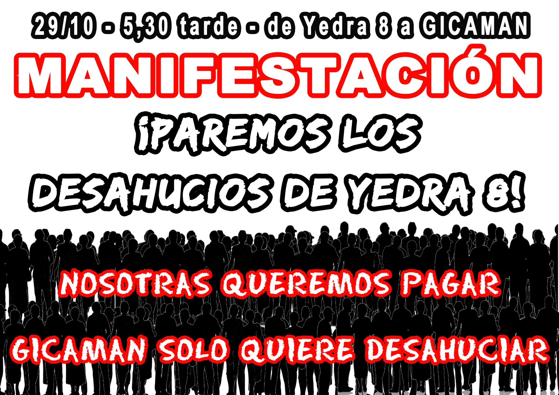 El próximo miércoles, 29, vamos a ir desde Yedra , 8 a Gicaman, con el propósito de parar los 70 desahucios anunciados.