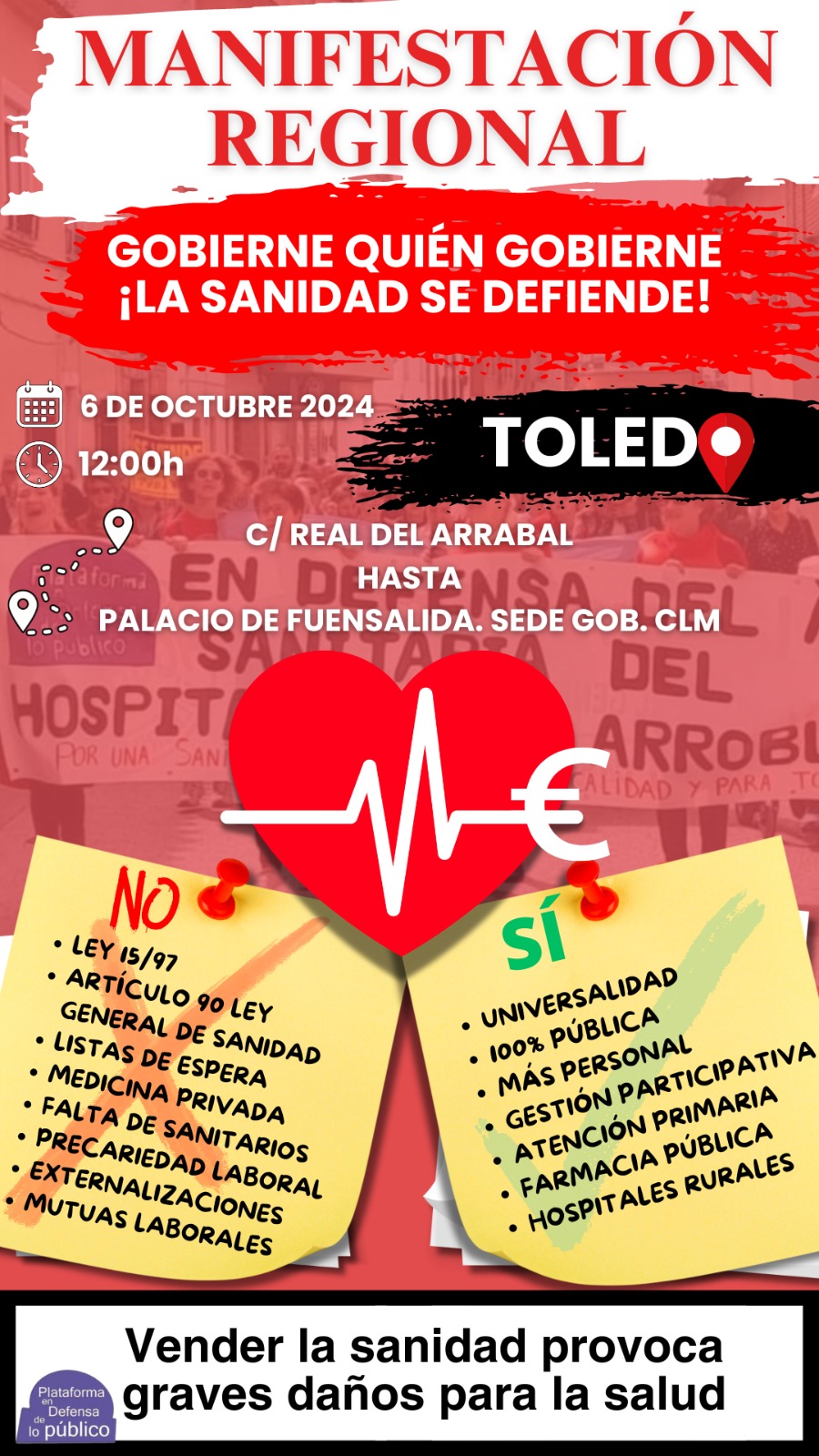 El próximo 6 de octubre de 2024 manifestación por una sanidad 100% pública y de calidad.