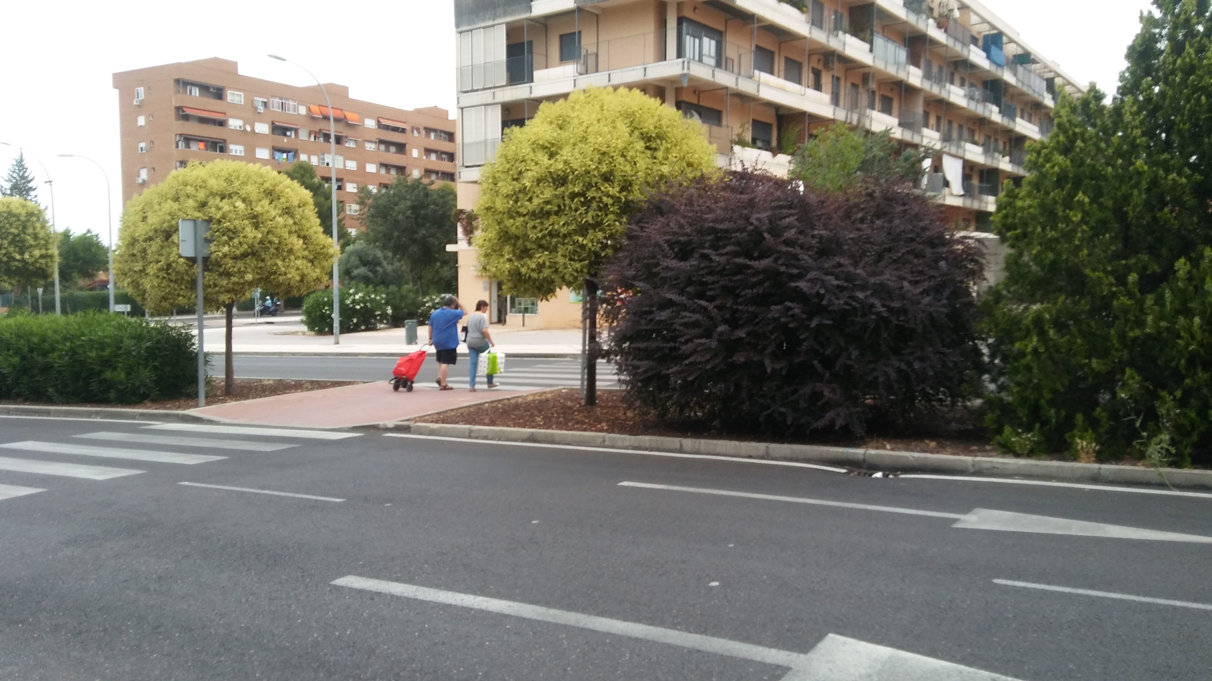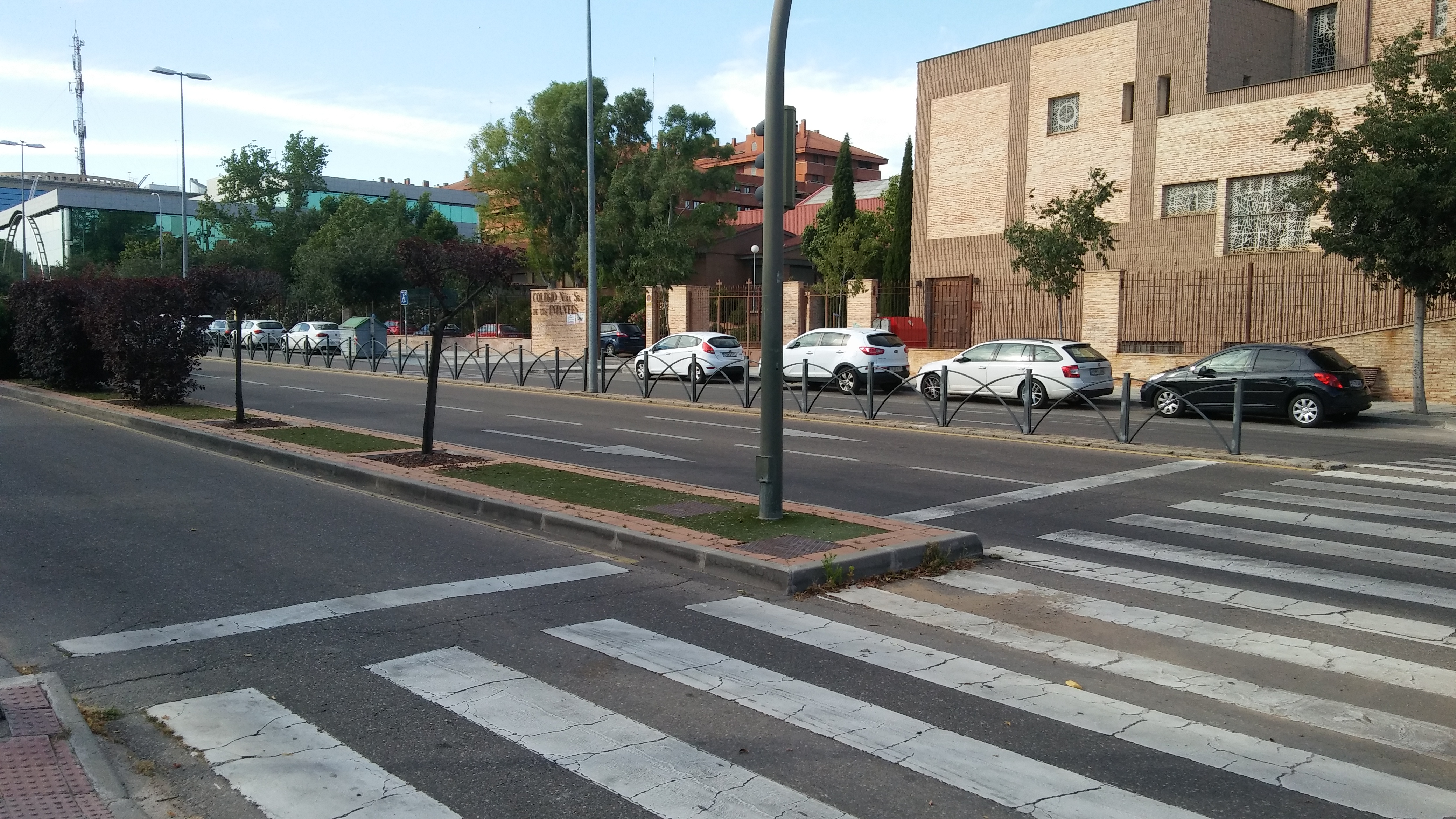La primera corresponde al paso de cebra que hay enfrente del colegio concertado INFANTES, y la iglesia San Julian( Avda Europa).Las tomé ayer 27 de junio, que fui a las pistas de atletismo del Parque Tres Cullturas. Como se puede apreciar, unos 15 metros antes del paso se ha dejado sin arbustos ni plantas. Y han