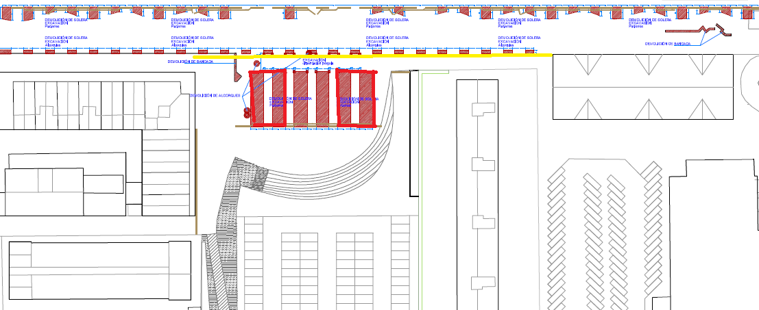 PD.- lo anteriormente escrito se refería al estado de la obra el viernes, personados hoy lunes 13 de agosto a las 18 horas para realizar unas fotos, hemos observado que durante la jornada de lo 5 arriates que había modificando los 6 de los planos, los han dejado en cuatro, dos nachos y dos estrechos.